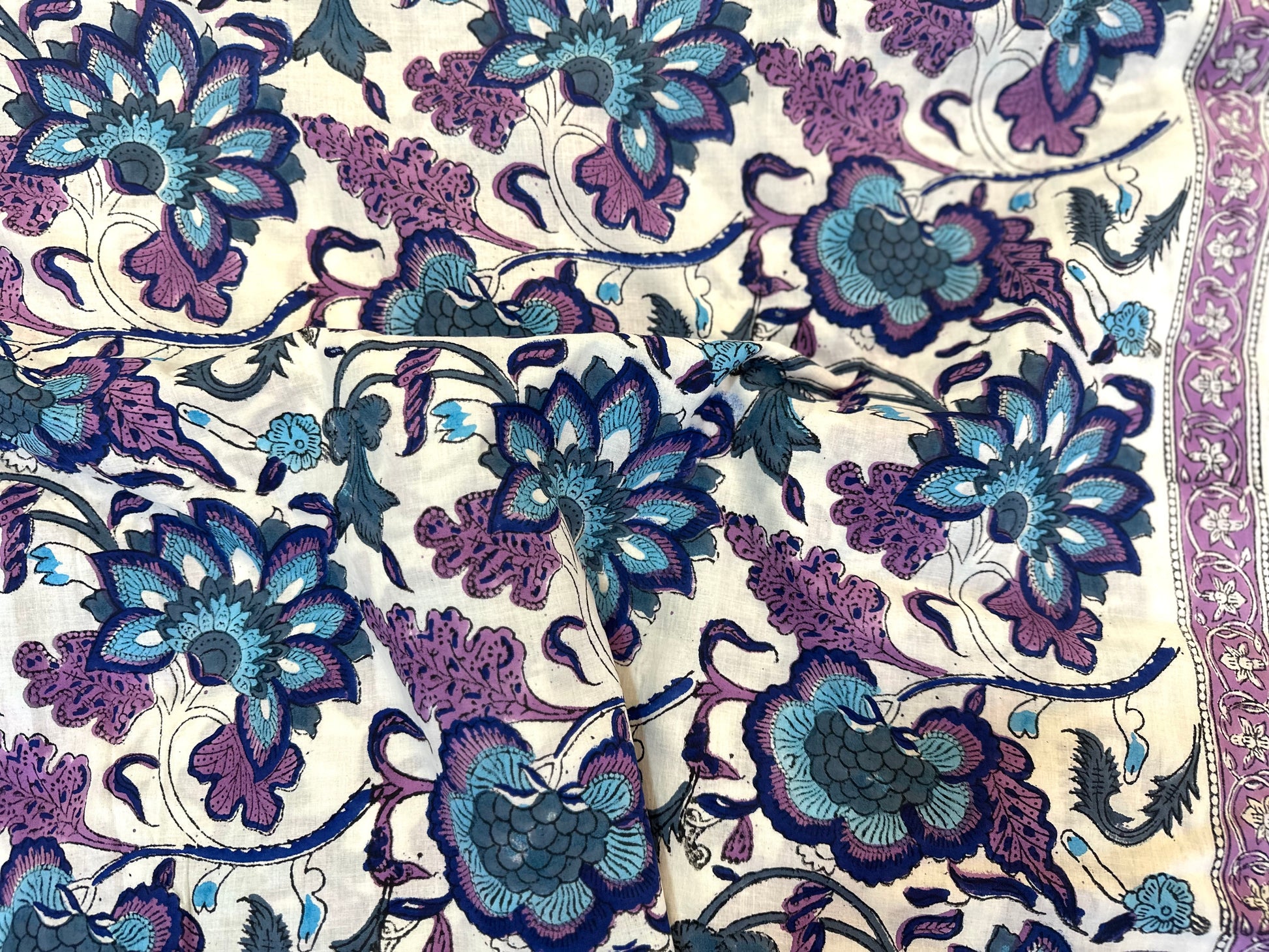 Violet Bloom ブロックプリントIndian cotton 100%