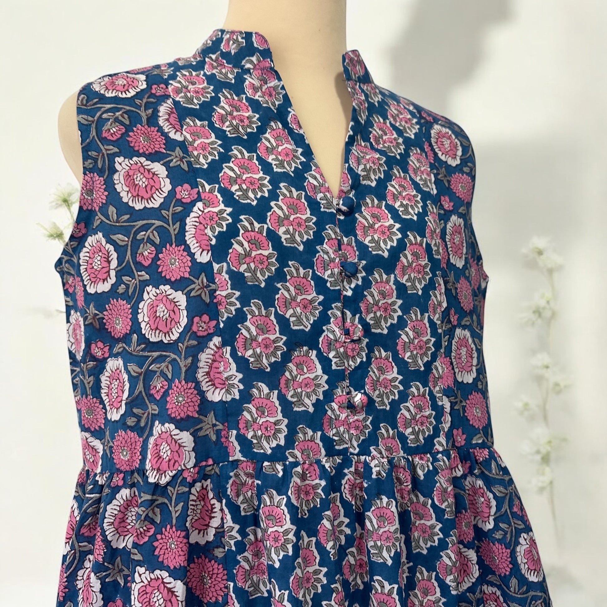 Using 2 different hand block print fabric , the cutting is beautifully done