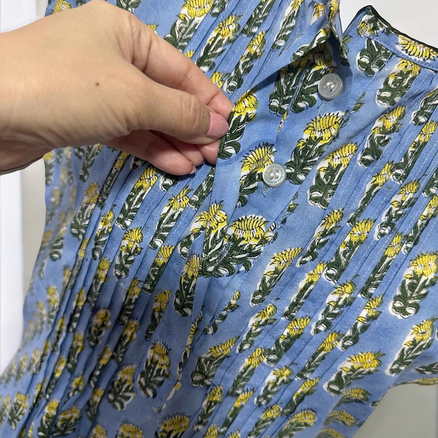 ハンドブロックのインド綿を使用したプリーツ加工が美しいブラウス。